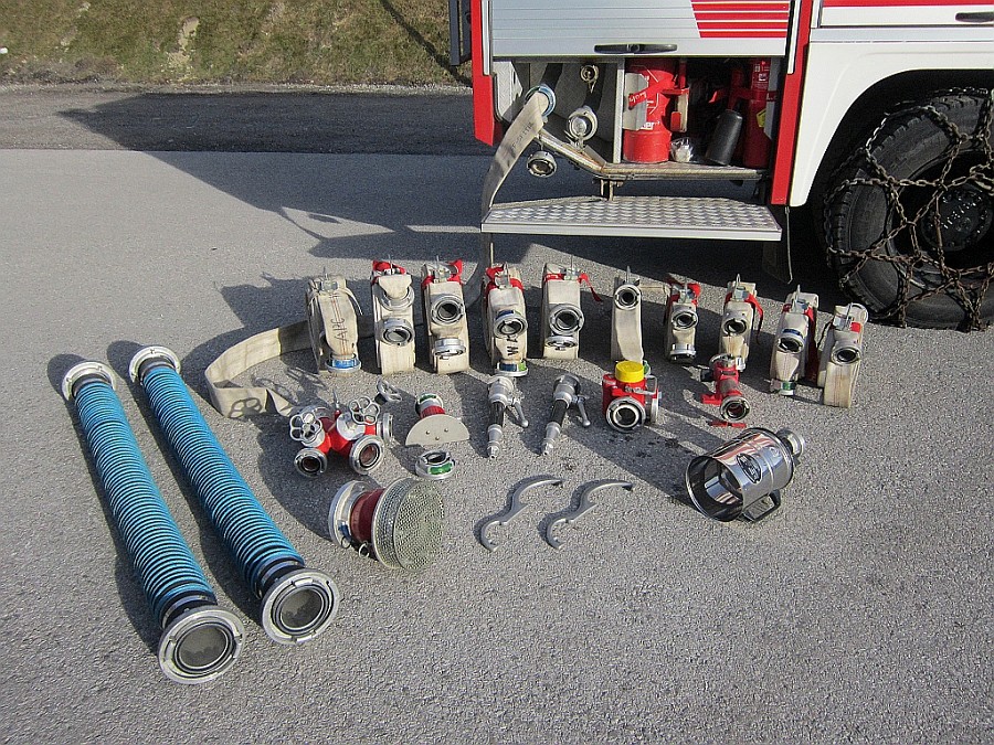 Zur Löschwasserförderung und zum Aufbringen des Wassers bzw. Löschschaumes auf den Brandherd werden verschiedenste Schäuche, Armaturen und Geräte verwendet. Hier ein Auszug: